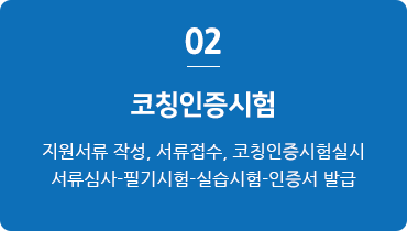 코치인증제도는 (사)한국코치협회는 코치의 자질을 높이고, 우리나라에 올바른 코치을 보급하고자 하는 목적으로 역량을 갖추고 있는 코치들에게 엄격한 자격시험을 통해 전문 코치자격을 수여하는 코치인증제도를 실시하고 있습니다. (사)한국코치협회의 전문코치로 활동하기 위해서는 코치전문교육과 코치실습이 필요하고 코치철학과 윤리규정을 준수 하여야 합니다.