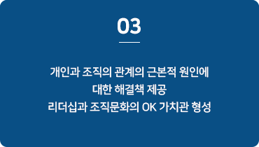 일반 강사가 아니라 이론과 실무 경험이 많은 전문인증코치 투입 및 조직 생활 경력이 풍부한 강사들의 효율적 강의 및 지도 실시